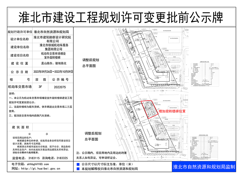 机动车交易市场增设室外旋转楼梯建设工程规划许可变更批前公示