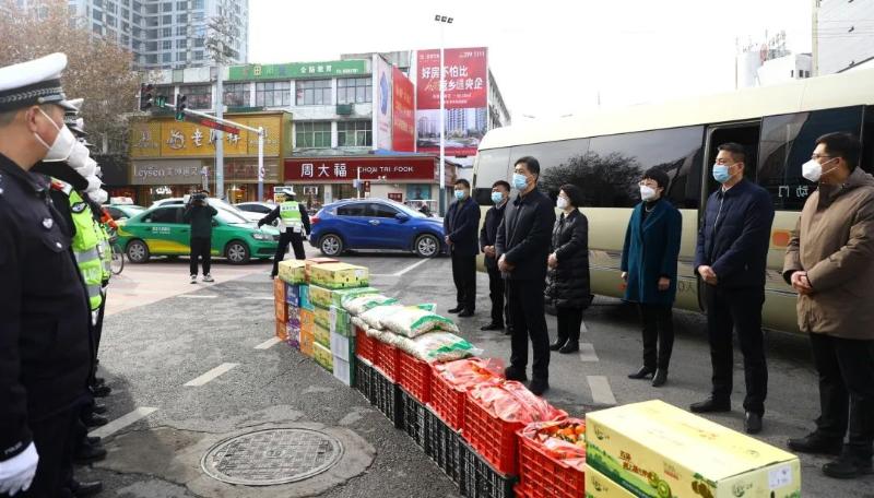 在淮海路与沱河路交警岗亭前,郭海磊、孙进一行看望慰问了正在一线执勤的干警,感谢他们发扬奉献精神,舍小家为大家,为维护社会治安稳定、保障群众欢乐过节做出的贡献。希望他们继续发扬优良传统,一如既往地站好岗、值好勤,严格依法履职,保障一方平安,确保广大人民群众平安欢乐祥和过节。