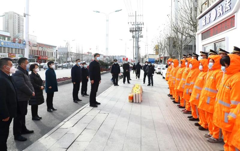在县沱河路东段,郭海磊、孙进一行看望了城管队员和环卫工人,感谢他们为城市清洁和市容秩序付出了努力和汗水, 希望继续立足本职、爱岗敬业,努力为广大市民营造一个更加干净整洁有序的城市生活出行环境。